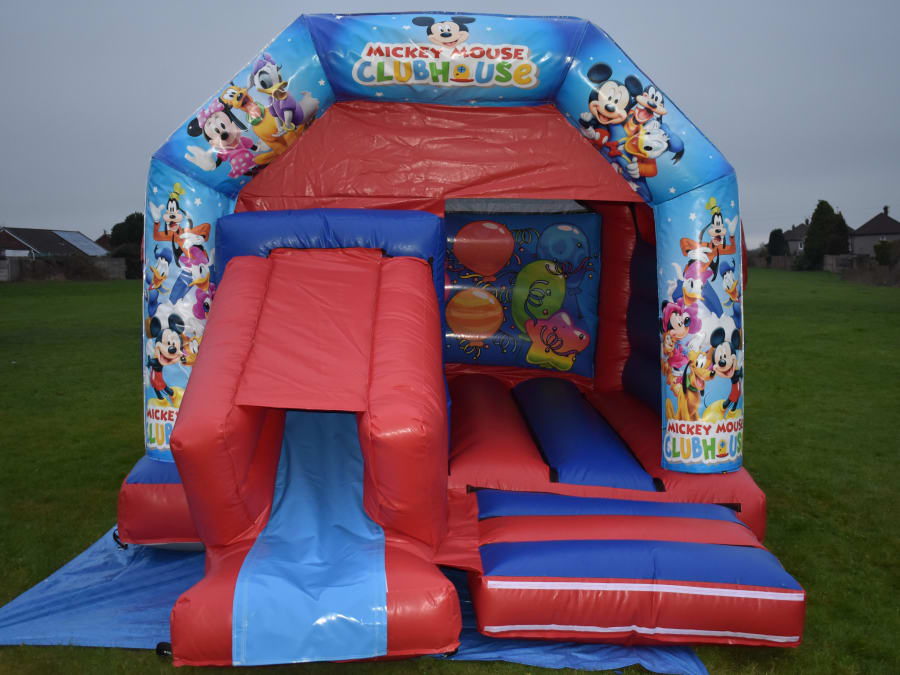 12 x 18 Mickey Mouse Clubhouse Bouncy Castle/Slide Combo, Is your little one a huge fan of the Mickey's famous clubhouse? Great come and join Mickey, Minnie, Donald, Goofy, Daisy and all his funky friends in this Bouncy clubhouse, Amazing artwork.