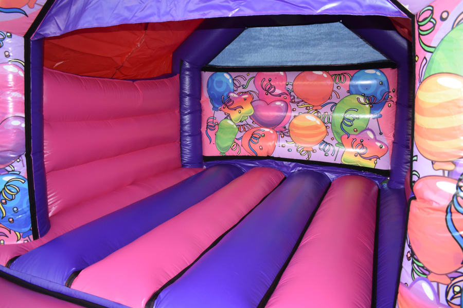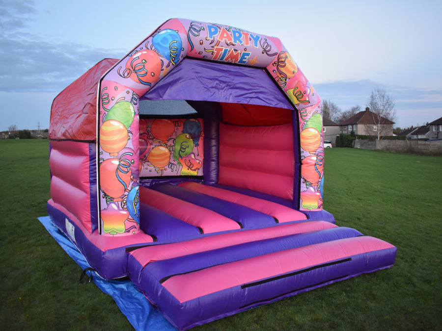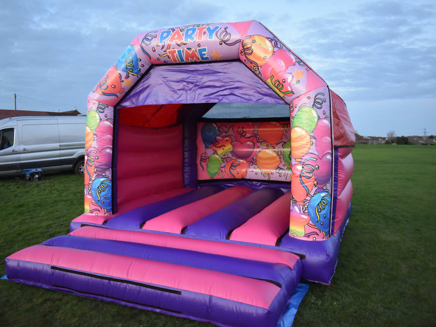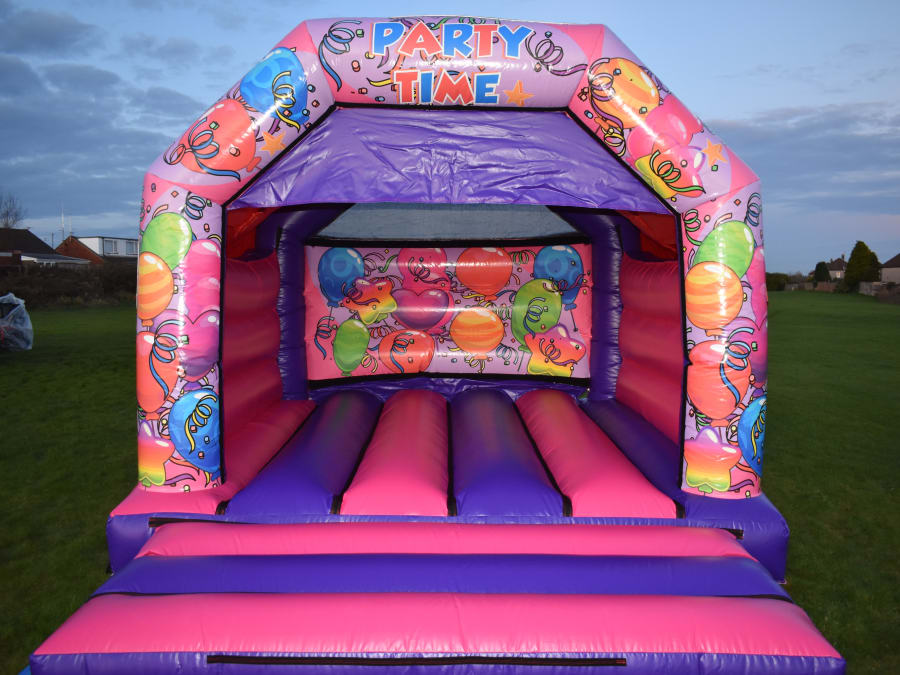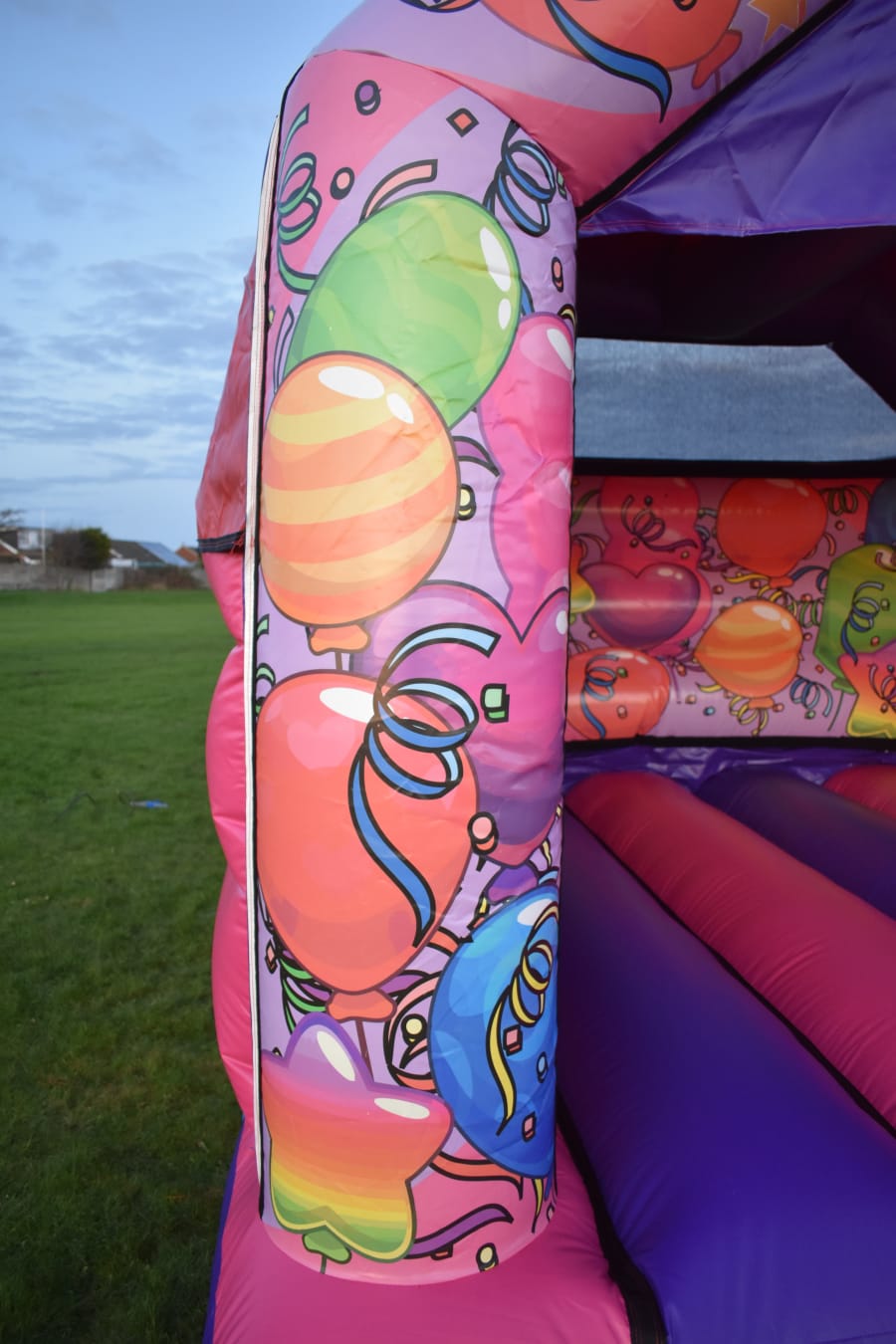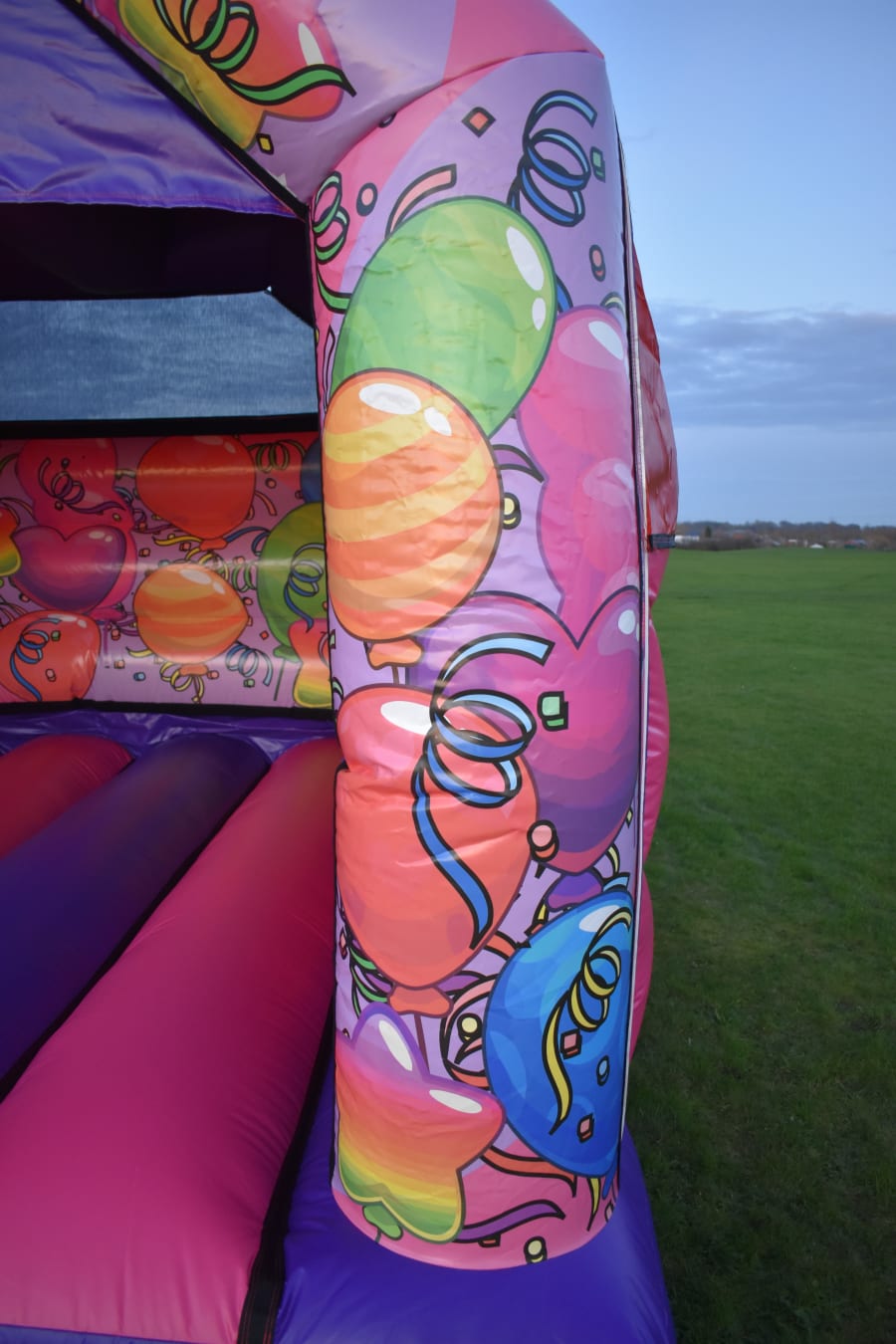 12 X 15 Party Time Pink & Purple Bouncy Castle, A firm favourite for girl birthday party's, christenings and any event even an Eid celebration or Pony parties