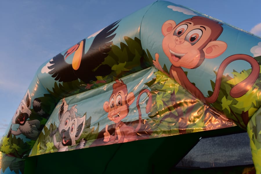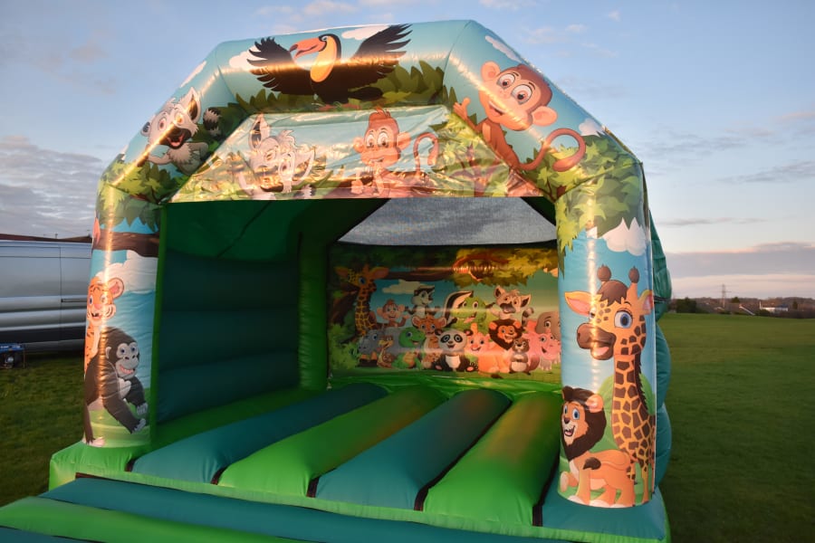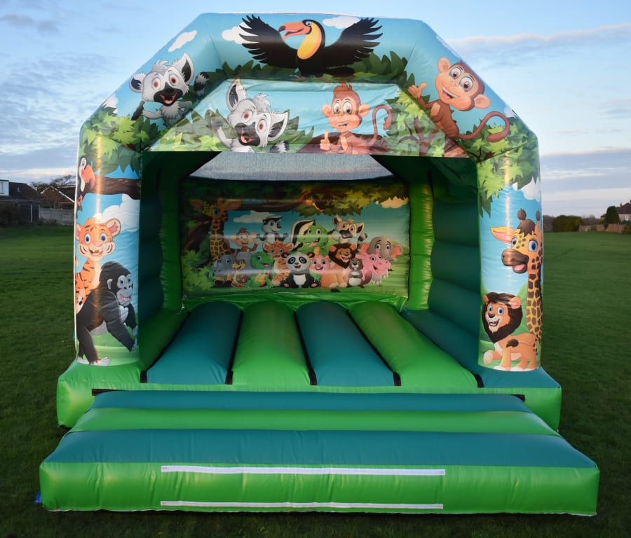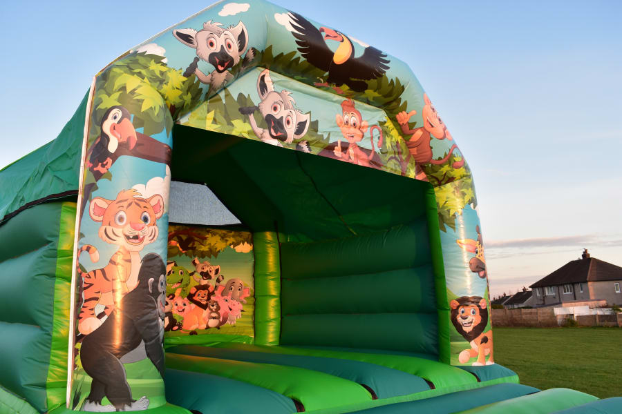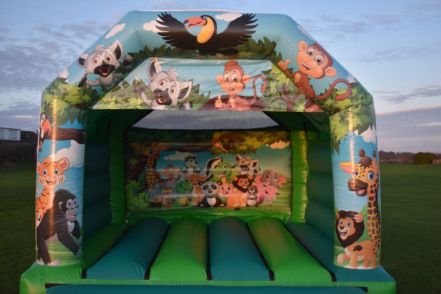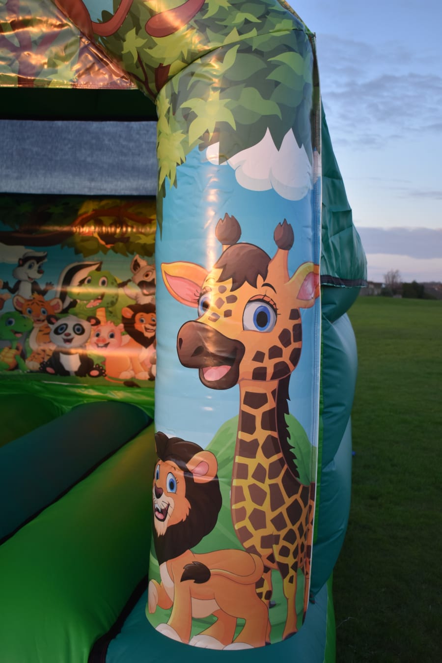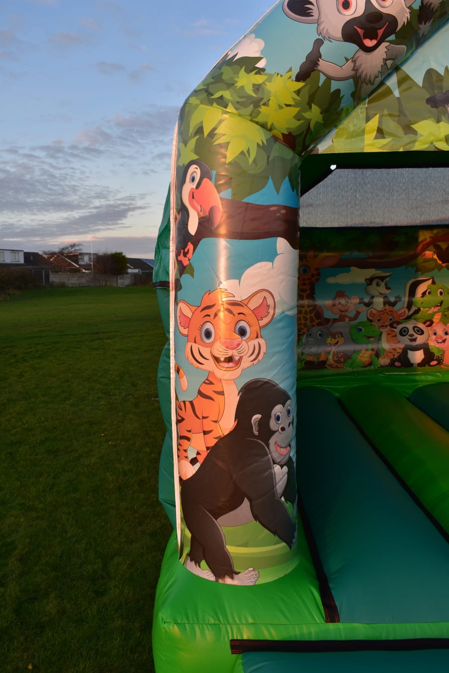 Raincover fitted as standard with our jungle bouncy castle. The party doesn't have to stop when the skies open in this rainforest. Bounce from the savannah to the desert with our jungle bouncy castle; it's an inflatable that kids always go wild for.
